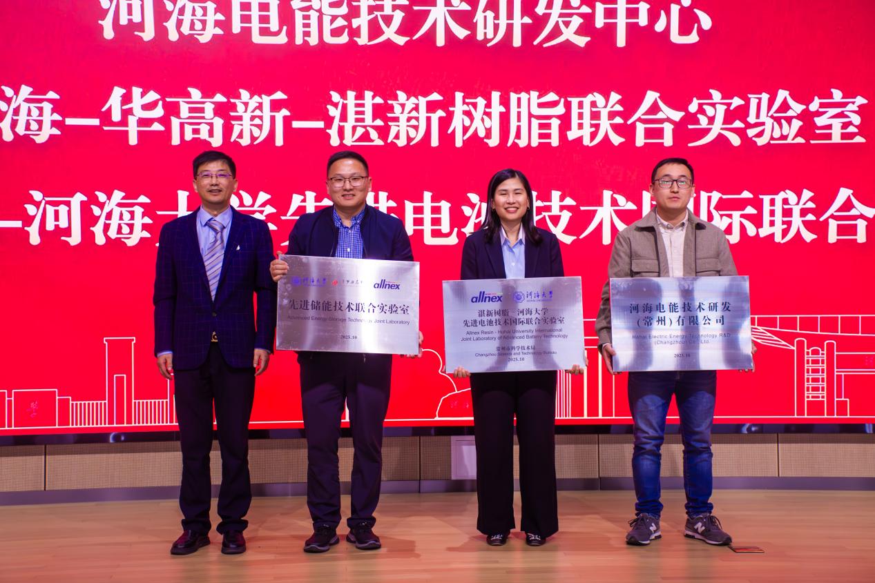 在热烈的氛围中,大会进入科研平台揭牌环节。副校长吴峰为“电化学储能材料与系统协同创新省高校重点实验室”揭牌。院长许昌为“河海电能技术创新研发中心”“河海—华高新—湛新树脂联合实验室”“湛新树脂—河海大学先进电池技术国际联合实验室”等科研平台揭牌。