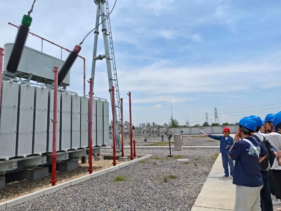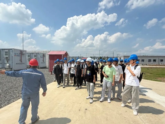 在林洋五河风光储一体化基地,同学们参观了升压变电站与储能电站。在技术人员和老师的带领下,同学们了解了风光储一体化基地的组成,在升压变电站参观了电力从生产到并网的全流程及主要设备,重点参观了升压变压器、开关设备等发电厂主要电气设备及注意事项;在储能电站,同学们了解了逆变器、储能系统在新能源发电领域的重要作用和工作过程。