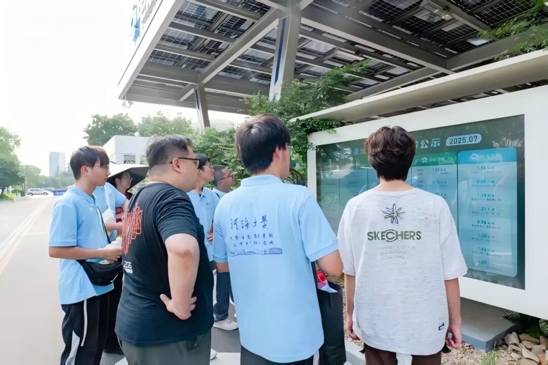 在电能侠充电基地,团队成员实地考察了光伏建筑一体化技术的创新应用。通过专业讲解与现场观察,团队深入了解了光伏发电系统与停车场结合的运作模式,及其在节能减排方面的实际成效。这使团队成员对新能源产业链形成系统认知,同时拓宽了专业视野。