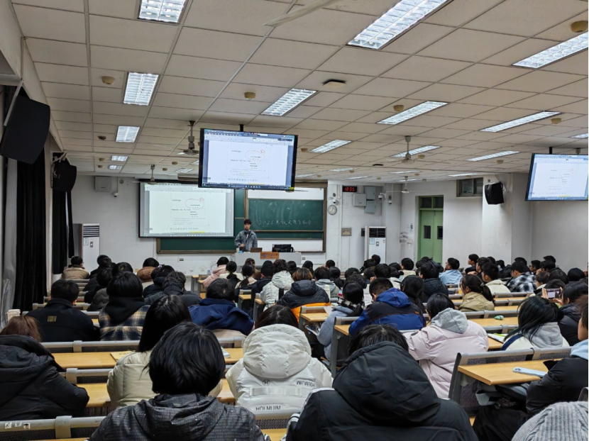 第二个分享的是王宇轩同学,王同学也是分享了在“源泉工程”返校活动中的经验。他向学弟学妹们讲述了河海大学的从1915年创办到2025年的110年历史,王同学不仅详细介绍了河海大学的优势学科,诸如“水资源工程”与“水利工程”等领域的学术实力,更是从“生活环境”、“学术氛围”以及“休闲娱乐”三个维度,全面展现了河海大学学子丰富多彩的校园生活,然后利用热图激发了学弟学妹的积极性,并分享了在高三阶段如何高效备考以及如何在高考中保持最佳心态的策略,耐心解答了在场学弟学妹们关于河海大学的种种疑问。这些经验为想要参加源泉工程的同学提供参考和指引。