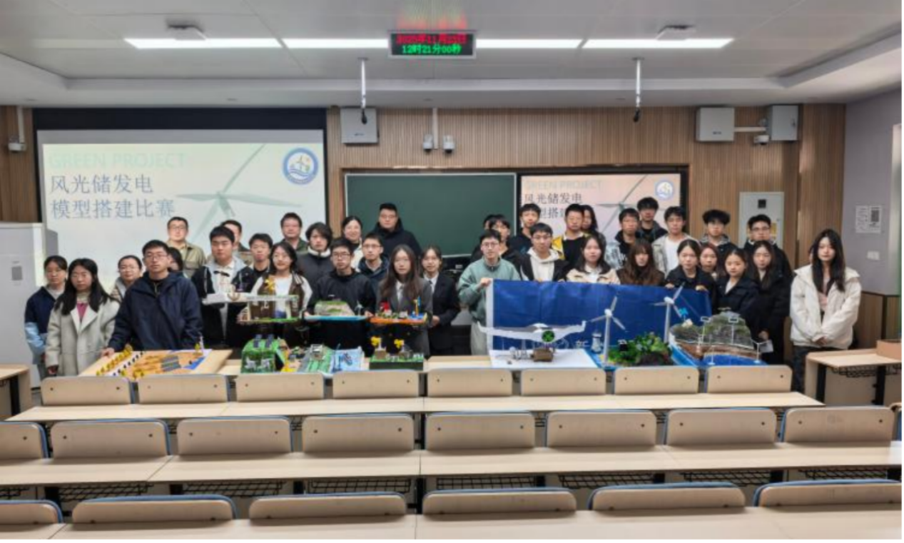 2025年11月23日,我院于江宁校区致用楼 317 教室开展的第三届风光储模型搭建比赛顺利举行。本次比赛由新能源科学社团协助新能源科协参与策划协调,为活动的有序开展提供了专业支持与技术保障,邀请了黄晶、刘惠文、王栋海、瞿俊峰、杨立娜五名老师担任答辩评委。